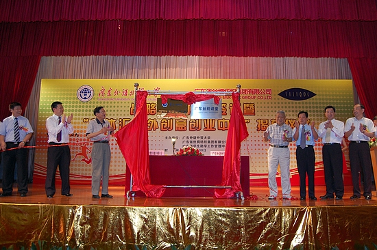下午3点,在黄浩、刘鹤翘等的见证下,仲伟合与柯惠琪举行了签约仪式,随后,仲伟合一行共同为“广东丝纺讲堂”与“MBA教学实习基地”揭牌。几位领导和嘉宾又为新体汇广外创意创业中心揭幕,标志着其在广外正式开始运营。