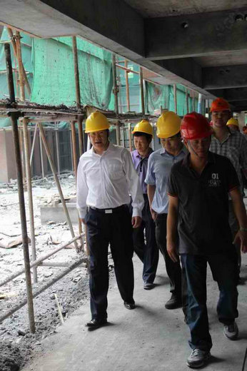 仲伟合一行分别到云峰学生公寓、原财职院图书馆、教学楼、 云山15、16栋等建设工地,认真检查了工程质量,听取了施工单位有关工程概况及施工技术方案的汇报,对工程进展情况给予充分肯定。