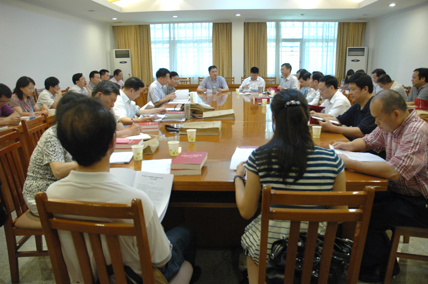 与会代表就学习胡锦涛总书记在清华大学建校100周年讲话和他在中央政治局第26次集体学习上的讲话进行发言。留学生院院长梁学宏交流了自己的学习感言。他谈到,清华大学的成功离不开对文化的传承、创新和对对外文化交流的积极开展。他结合我校“310工程”建议我校继续在“文化”二字上下功夫,利用我校外语优势,组织团队,打造类似于《光荣与梦想》这样的优秀文化译作。教务处处长詹文都就人才培养阐述了个人的几点思考意见,他认为,学校要牢固树立人才培养中心地位,要认真处理教学与科研、社会服务、文化传承的关系,文化知识学习与思想品德修养的关系、理论与实践的关系等八大关系。信息学院党委书记马庆华介绍了本学院提高教育质量,推进科研工作的经验;他指出科研工作是“顶天立地”的。中文学院党委书记李和民则结合中文学院的实际情况,谈新时期高等学校如何推进文化传承与创新工作。