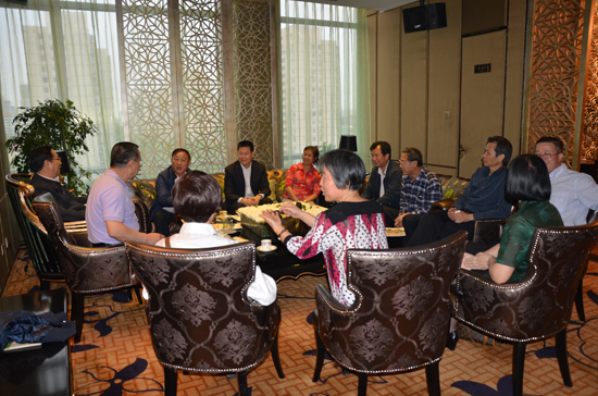 5月21日,仲伟合来到北京国际饭店,走访了正在组织中国嘉德2011春季拍卖会的中国嘉德国际拍卖公司总经理王雁南学长(73级英语)。仲伟合热情邀请王雁南学长有时间“常回家看看”。