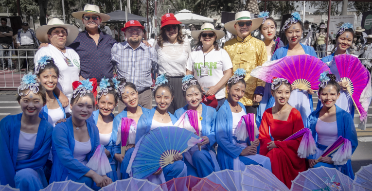每当花车队伍通过时,沿街的观众都会友好地用西语或者中文欢呼“你好”“谢谢”“China”“Baila”。孔院队伍所到之处,掌声、喝彩声不断。孔院的领导和老师也频频与观众挥手致谢,孔院工作人员也热情地给市民发送纪念品。阿雷基帕市政领导还专门接见了孔院院长,称赞孔院表演并与孔院老师合影留念。