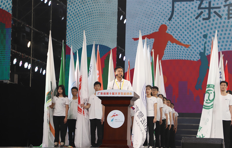 广东省第十届大运会组委会副主任、广东省教育厅副巡视员邱克楠主持开幕式。出席本次开幕式的还有广东省体育局党组书记、局长王禹平,广东省第十届大学生运动会组委会副主任、广东省体育局副局长麦良,我校副校长焦方太及中山大学、华南理工大学等13所承办本届运动会比赛的院校代表。