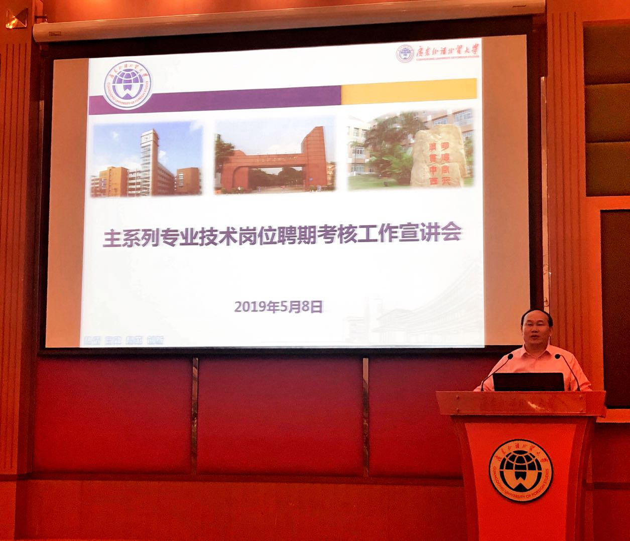 本网讯 5月8日下午,学校主系列专业技术岗位聘期(2015-2018年)考核工作布置暨宣讲会在北校区国际会议厅举行。各教学、科研单位负责人及工作人员、校聘期考核委员会办公室成员、人事处工作人员参加会议。副校长阳爱民主持会议并讲话。