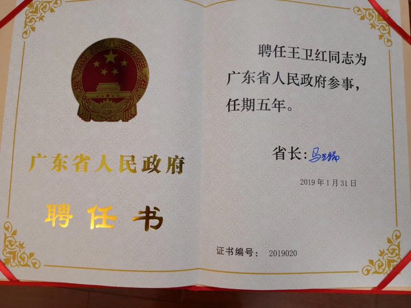 王卫红,九三学社成员,连续担任广东省第九、十、十一届省政协委员,期间工作积极性高,参政议政能力强,积极建言献策,被誉为“明星委员”。她积极撰写政协提案,其中6项提案被评为重点提案和优秀提案。现担任省政协研究咨询委员会委员。