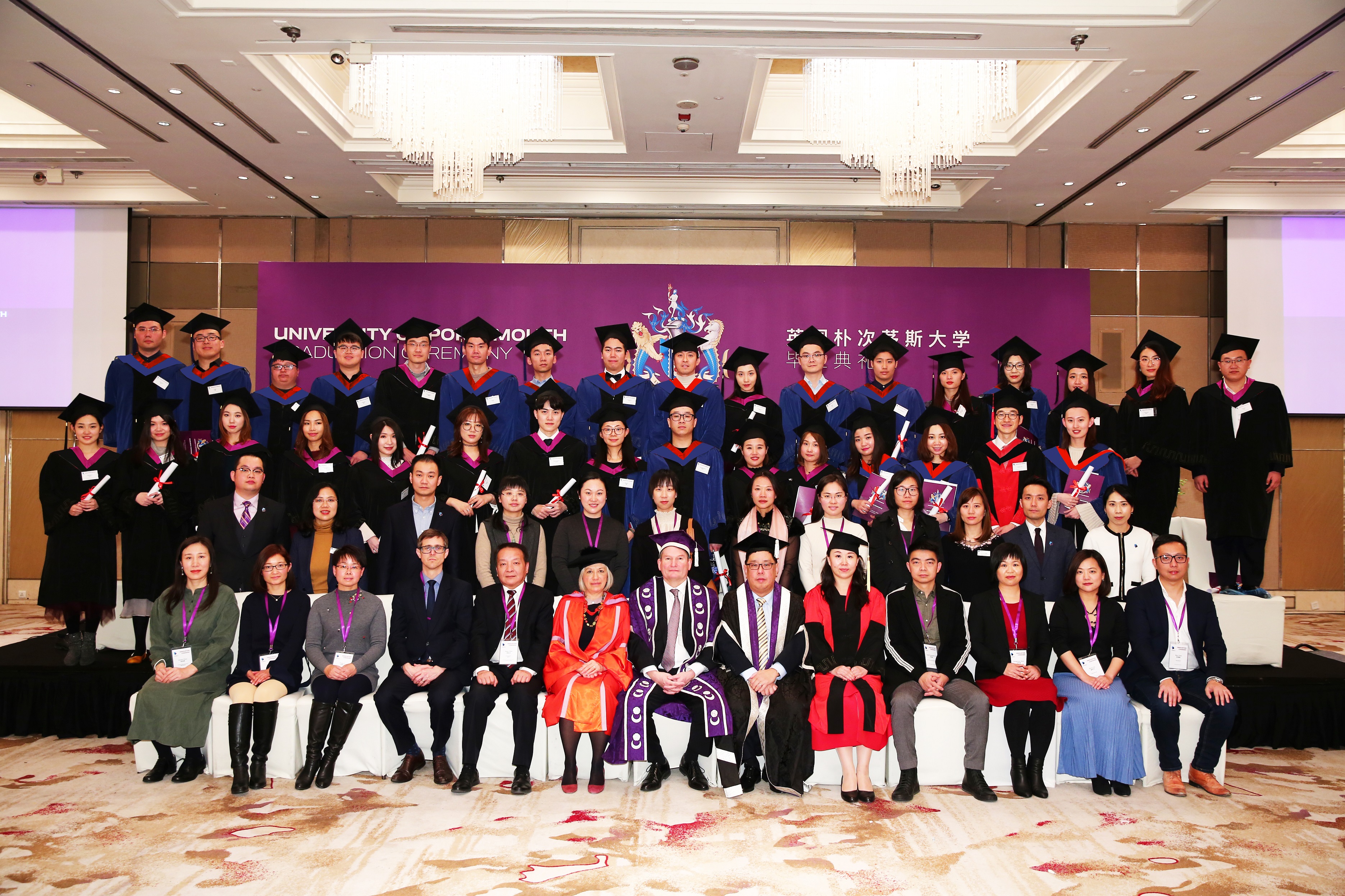 Graham Galbaith致辞,祝贺毕业生学业圆满、再展宏图,并为参加典礼的近四十位本科、硕士及博士毕业生颁授学位。典礼由朴次茅斯大学中国办公室主任王颖主持。此外,受邀观礼的还包括来自英国文化教育协会、上海交通大学、国际教育联盟等单位和机构的嘉宾。
