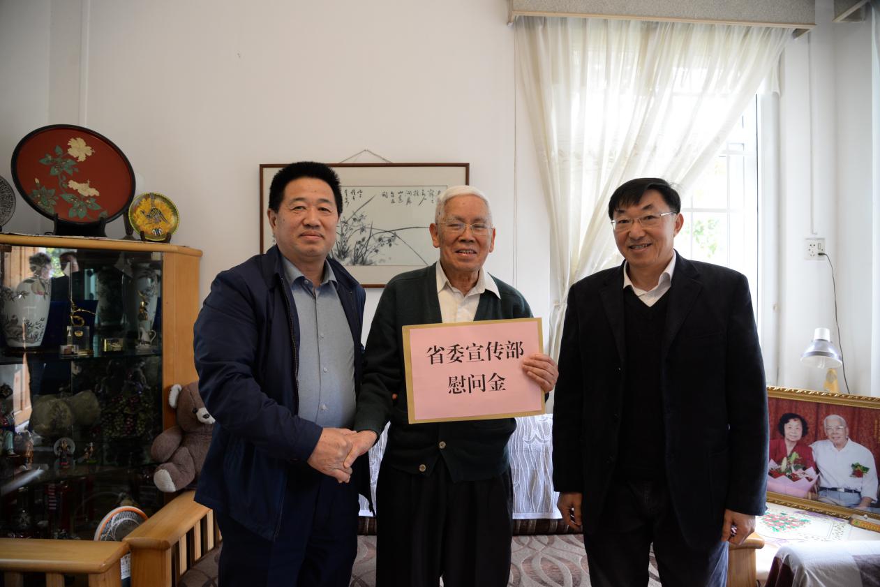 本网讯 1月29日上午,省委宣传部副巡视员李长青到我校北校区看望了“南粤楷模”、我校原校长黄建华教授,并致以新春问候和祝福。省委宣传部宣教处处长石雄东、省教育厅思政宣传处副处长刘才刚,我校党委副书记李云明、党委宣传部部长谢秀兰等陪同慰问。