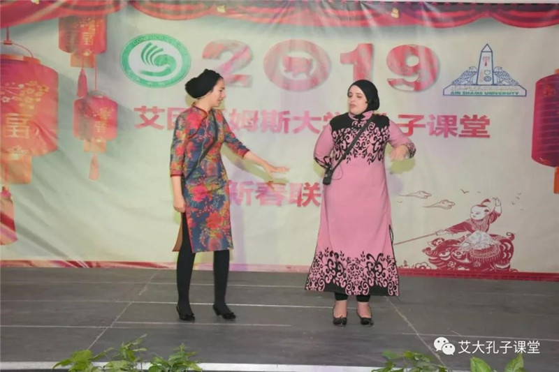 新春联欢会上,演员们表演了许多精彩的节目,这些节目不仅展示了中国传统文化之美,还展示了埃及传统文化之美。在新春联欢会上,艾大中文系学生以及艾大孔子课堂的老师们为观众们带来了很多精彩的节目,艾大校长在致新春贺词中强调,此次新春联欢会不仅反映了当今中埃的关系十分紧密,还表明了学校对中埃两国文化交流的重视。艾大孔子课堂埃方院长Esraa Abdelsayeed指出,此次活动是在艾大孔子课堂交流文化的框架下举办的,她还说到,我们举办此次新春联欢会的目的是给中国老师和埃及老师提供一个共度新春的机会,一起共度对中国人来说最重要的节日——春节。