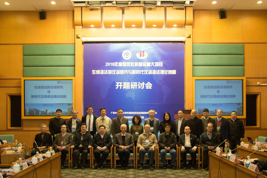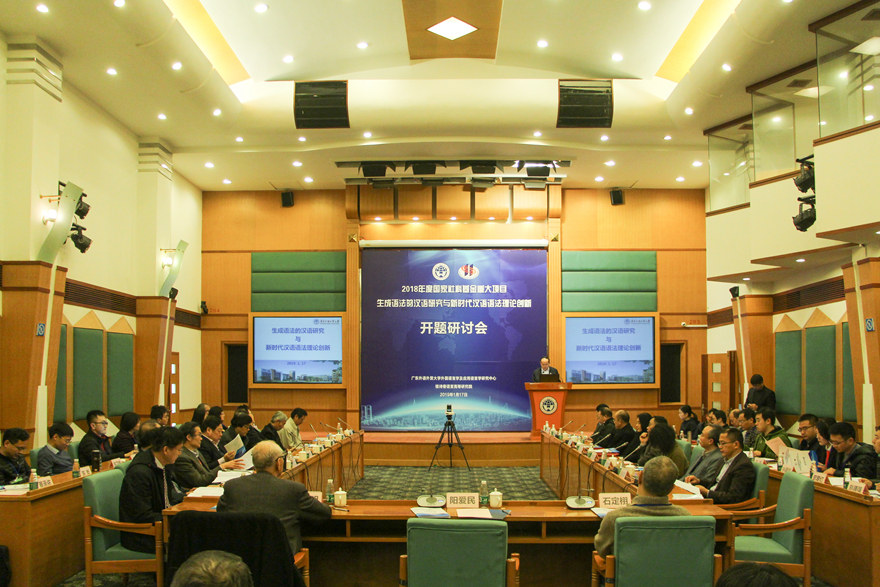 本网讯 1月17日上午,2018年度国家社科基金重大项目“生成语法的汉语研究与新时代汉语语法理论创新”开题研讨会在行政楼三楼国际会议厅举办。我校副校长阳爱民以及中国社会科学院、北京大学、浙江大学、北京语言大学、华中师范大学、暨南大学、江苏师范大学、民族学与人类学研究所等单位的专家学者出席了开题报告会。科研处处长陈平主持第一阶段会议并介绍了重大项目有关情况及开题要求。北京大学教授陆俭明作为开题研讨会专家组组长主持了第二阶段会议。
