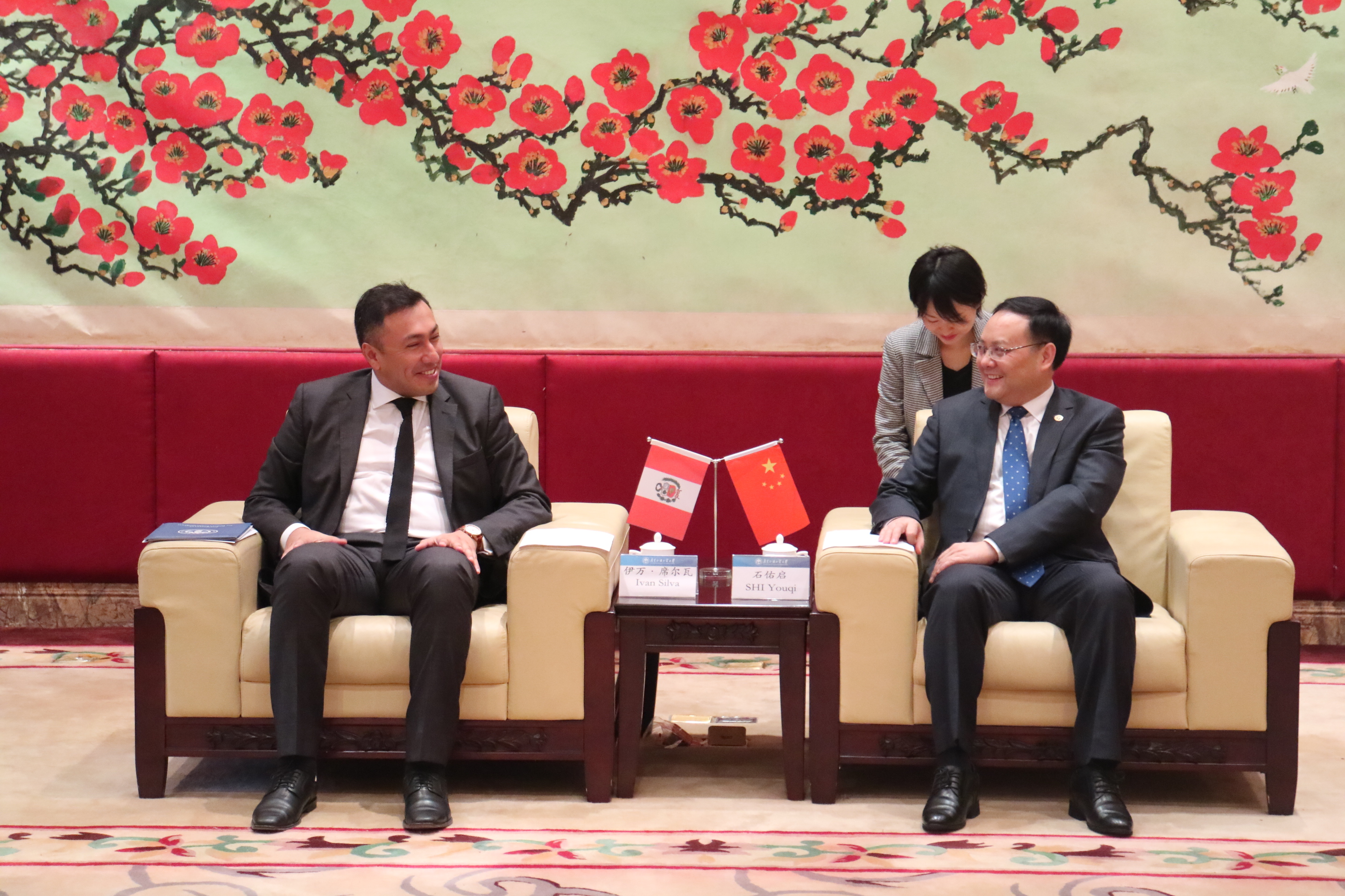 石佑启向伊万·席尔瓦介绍了我校西班牙语教学的基本情况。他指出,我校开展西班牙语教学已有50余年历史,是新中国成立后第一批开办西语专业的院校,目前已与53个国家和地区的380多所教育和文化机构建立了合作与交流关系,在海外建立有5所孔子学院(孔子课堂),其中,与秘鲁的圣玛利亚天主教大学合作举办的孔子学院发展良好。石佑启希望继续与秘鲁高校开展更多的教师互访、学生互换、科研学术等合作项目,为深化两国的经贸与文化交流,推进中国“一带一路”倡议做出更大的贡献。