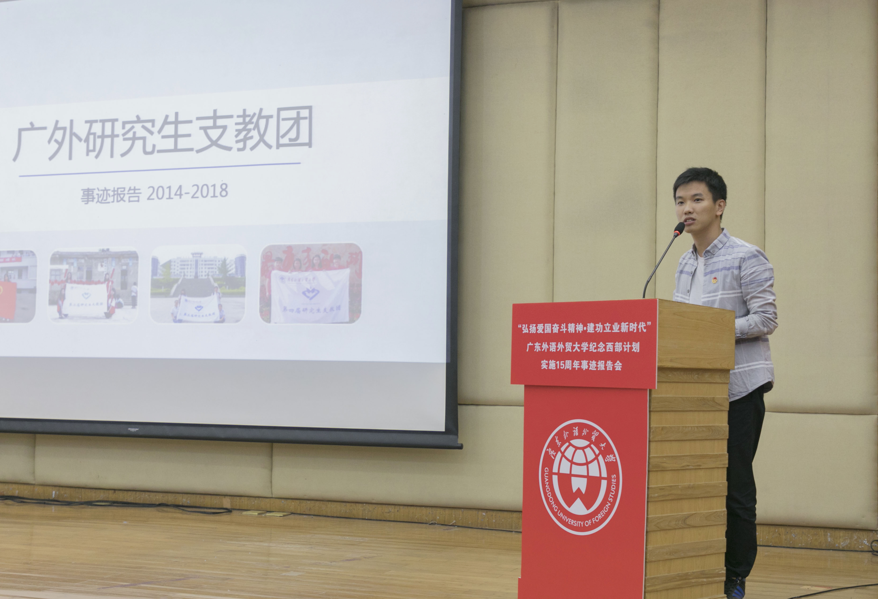 党委组织部部长方迎生,党委宣传部部长谢秀兰,学生工作部部长谢应东,研究生工作部部长刘志军,研究生院院长胡文涛,校团委书记苏奕,校友总会秘书长谢文新,英文学院党委书记林绍雄,商英学院党委书记王秀民,翻译学院党委书记李和民,国关学院党总支书记孙远雷,西语学院党委副书记陈华荣,金融学院党委副书记赵观音,数统学院党委副书记余海波以及西部计划优秀志愿者参加活动。
