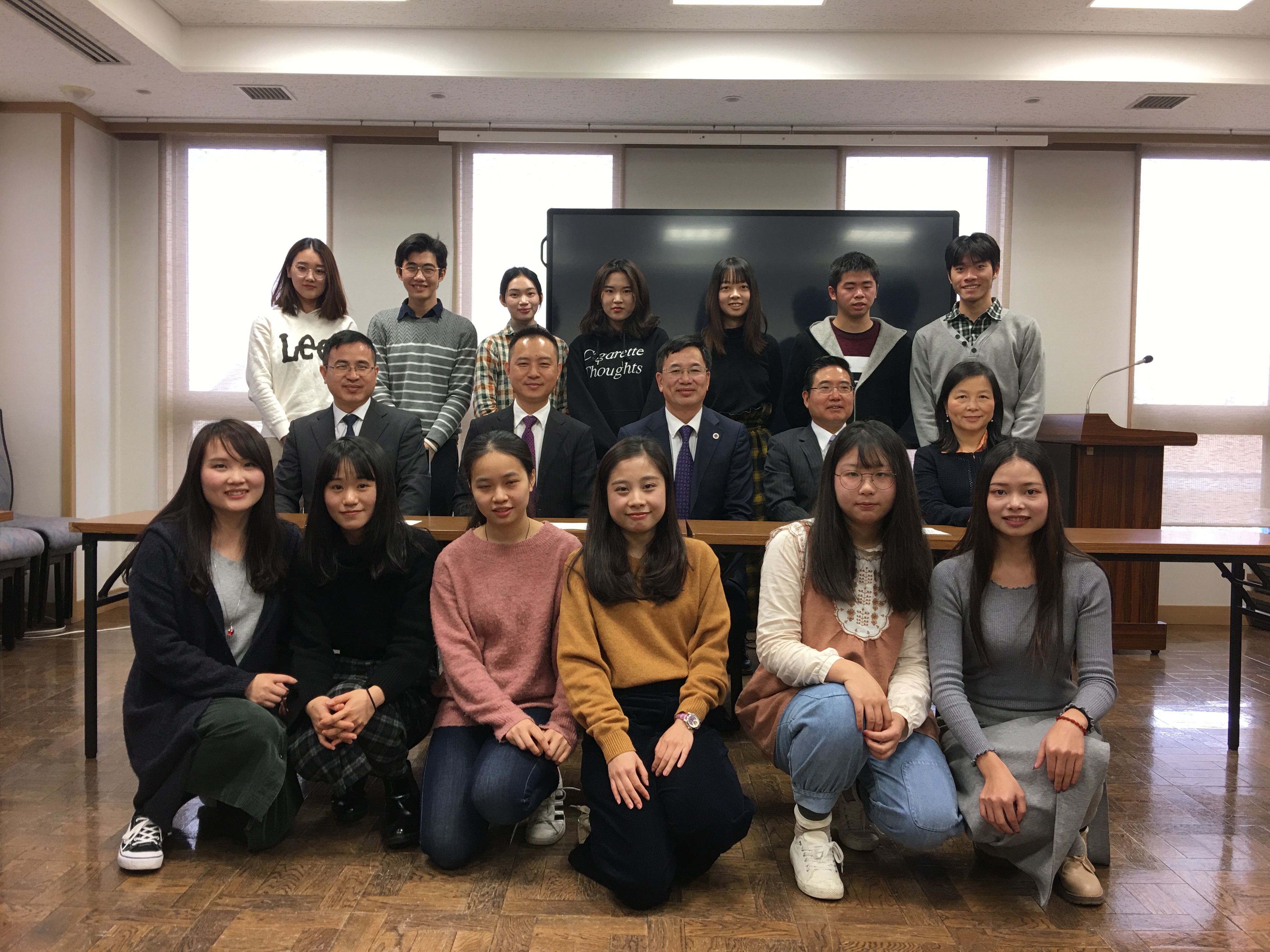 何传添探望了我校在札幌大学留学的学生。我校学生代表汇报了在札幌学习和生活的情况,并用日语展示了学习成果。何传添勉励同学珍惜在日本留学的时间,主动学习,积极交流,提高学习的成效。