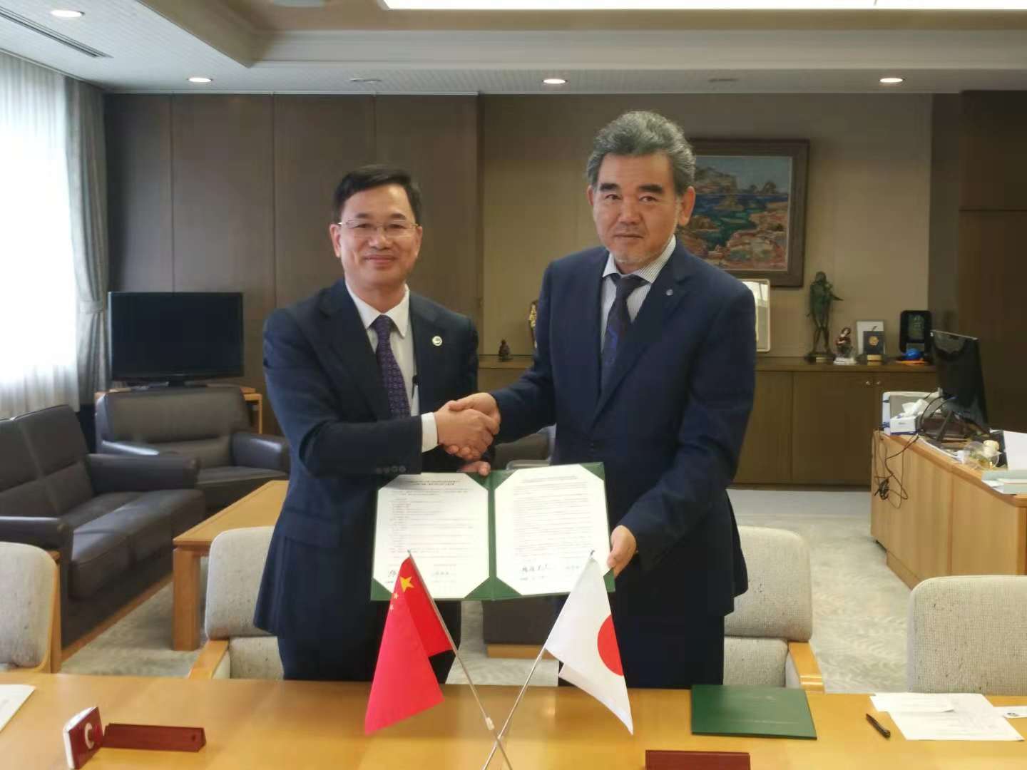 11月19日,何传添一行访问了广岛大学,拜会广岛大学校长越智光夫和副校长佐藤利行。何传添和越智光夫代表两校签署了校际合作协议和学生联合培养协议。双方希望进一步加强在学生交流、学者互访、科学研究方面的深度合作。何传添代表我校校长石佑启邀请越智光夫等未来访问我校。