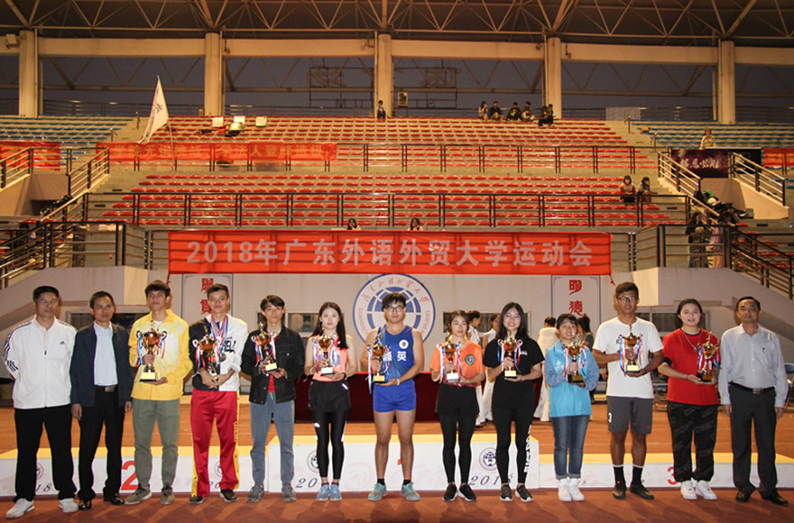 比赛总裁判长黄德沂宣布了比赛结果,商学院夺得学生团体总分第一名,第二和第三名分别是经济贸易学院和金融学院。体育部副主任丘乐威宣布,本次校运会体育道德风尚奖由经贸学院、商英学员、商学院等学院揽得,信息、商英、会计等学院的6名同学获评“健康之星”。