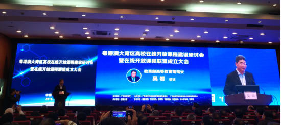 本网讯 11月24日,粤港澳大湾区高校在线开放课程建设研讨会暨在线开放课程联盟成立大会在暨南大学举行,教育部高等教育司司长吴岩,省委教育工委副书记、省教育厅党组副书记、副厅长邢锋,广东省教育厅高教处处长郑文以及粤港澳大湾区高校代表等近300人参加会议。我校副校长焦方太、教务处处长姜琳等应邀参会。