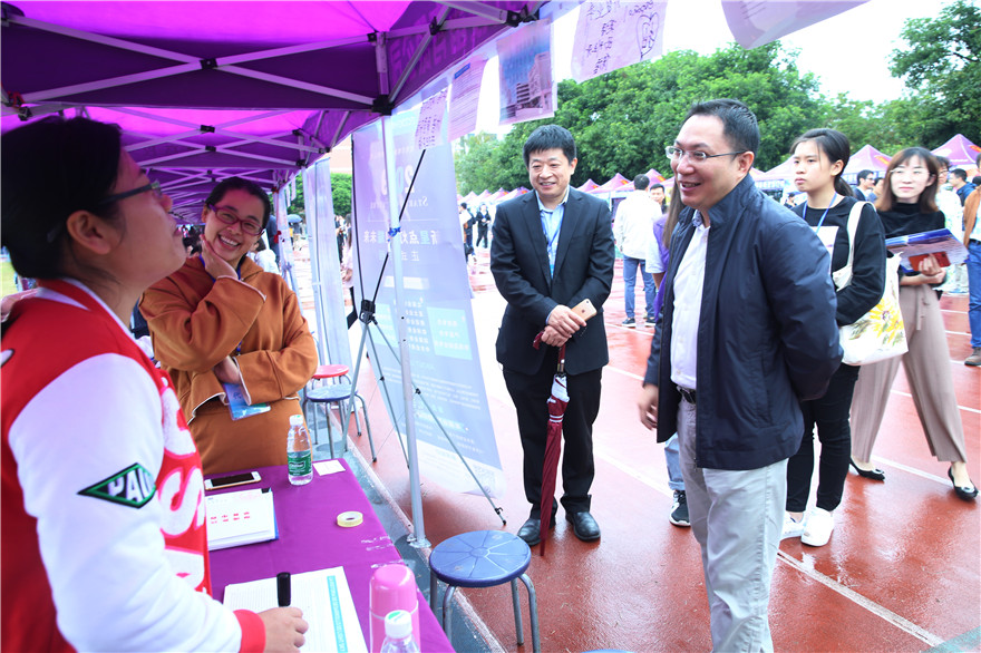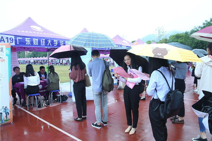 本网讯 11月17日上午,由广东省教育厅主办,我校承办的广东省2019届高校毕业生就业供需见面会(一带一路人才暨外语外贸管理类专场)于我校北校区田径运动场举行。本次见面会吸引了200多家用人单位到场,包括南方航空、招商证券、比亚迪、捷普电子、苏宁易购、神州优车、宁波银行深圳分行和广外外校等优质用人单位,提供近5000余个就业岗位,涵盖外语、外贸、教育、经济、管理、计算机、艺术等专业,吸引了众多的高校应届毕业生前来求职应聘。