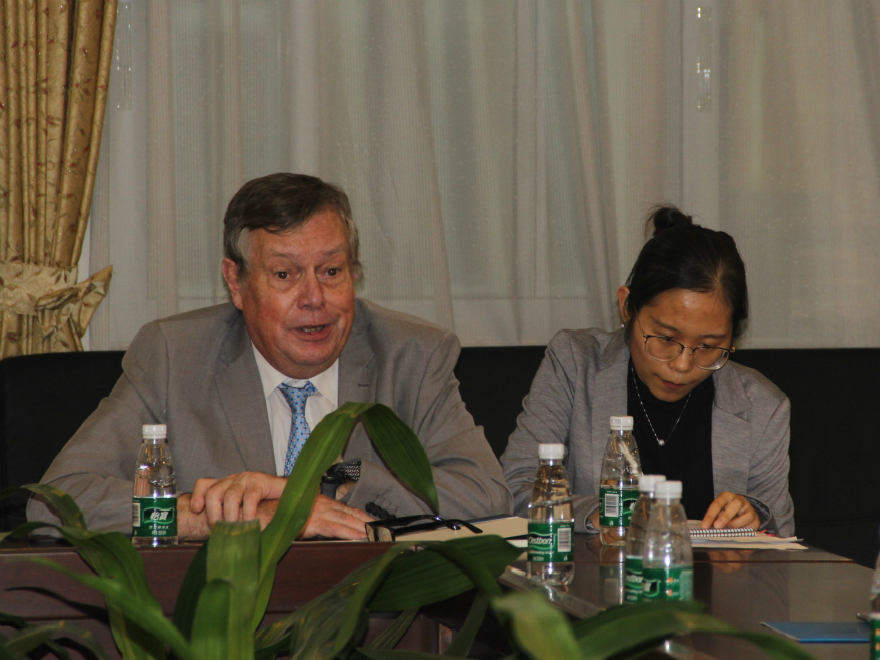 本网讯 11月16日,广东省丝路创业教育与国际认证交流会在我校北校区第三会议室召开,共同探讨新时代创新创业教育发展。交流会由英国工商管理协会(Association of MBAs, 简称AMBA)主办,我校商学院承办。我校副校长刘海春,AMBA中国区负责人、浙江大学管理学院教授王重鸣,国际丝路创业教育联盟主席、AMBA国际认证顾问委员会主席Andrew Lock以及华南理工大学、暨南大学等十所高校共计三十余名代表参加会议。