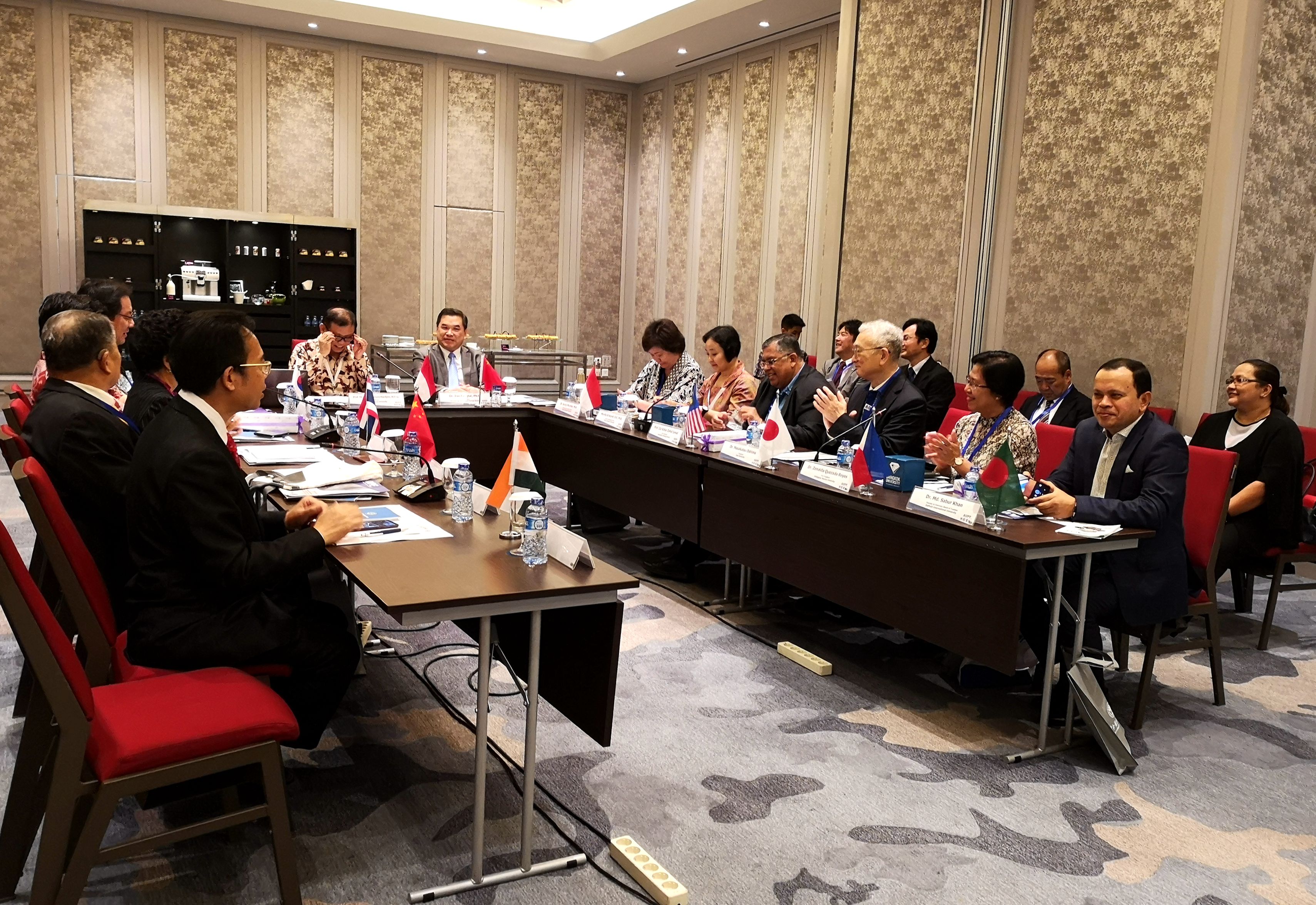 在11月6日举行的本届亚洲大学校长论坛常务理事会议上,我校提出设立亚洲大学校长论坛子项目亚洲教师研修工作坊项目(Asian Faculty Workshop,AFW)并申请承办第一期AFW项目的提议。该提议获得了常务理事高校的一致认可。会议决定第一期亚洲教师研修工作坊于2019年7月28日至8月3日在我校举办。本届常务理事会议还通过了2020年亚洲大学校长论坛由印度韦洛尔科技大学(Vellore Institute of Technology, VIT)承办、2020年亚洲暑期研修班(Asian Summer Program, ASP)由马来西亚玻璃市大学(University Malaysia Perlis, Unimap)承办的决议。