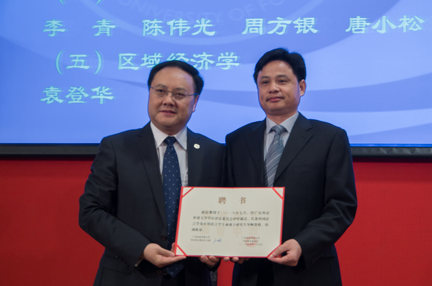 仪式上,应用经济学和外国语言文学受聘博士生导师代表易行健和赵晨分别发表了受聘感言,表示将继续秉承广外的优良传统,立德树人,在研究生人才培养和改革创新等方面发挥重要作用。