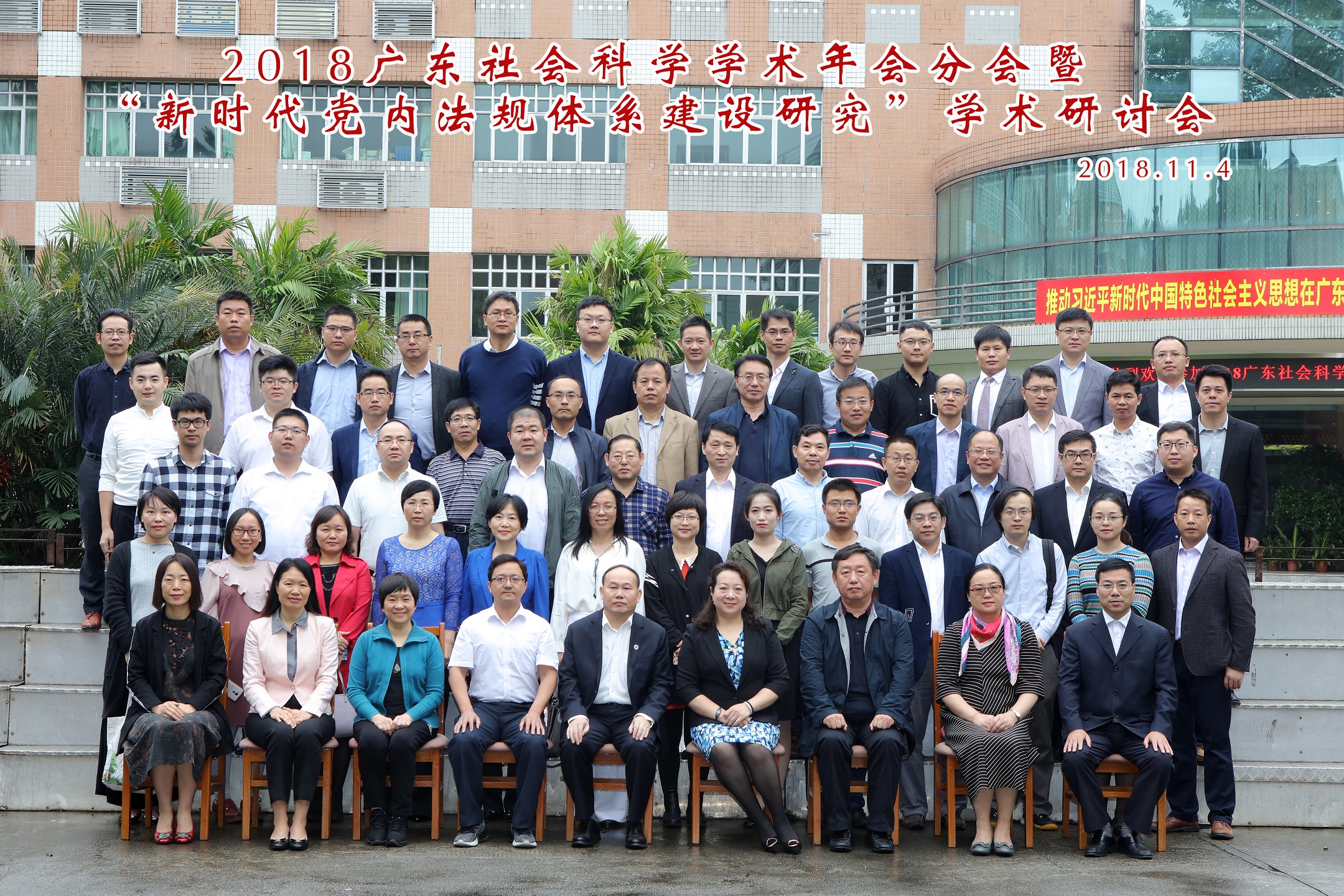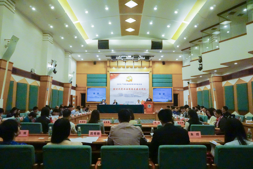 本网讯 11月4日,以“新时代党内法规体系建设研究”为主题的2018广东学术年会分会在我校行政楼国际会议厅举行。本次会议由广东省社会科学界联合会主办,广东外语外贸大学党内法规研究中心、广东外语外贸大学区域一体化法治研究中心承办。来自广东省社会科学界联合会、广东省委办公厅、武汉大学、山东大学、中山大学、暨南大学、深圳大学、广东海洋大学、中共广东省委党校、广东金融学院等省内外20余所高校、党校、党政机关的领导、专家、学者共计70余人出席了本次会议。整个大会隆重热烈,取得了丰硕的学术成果。