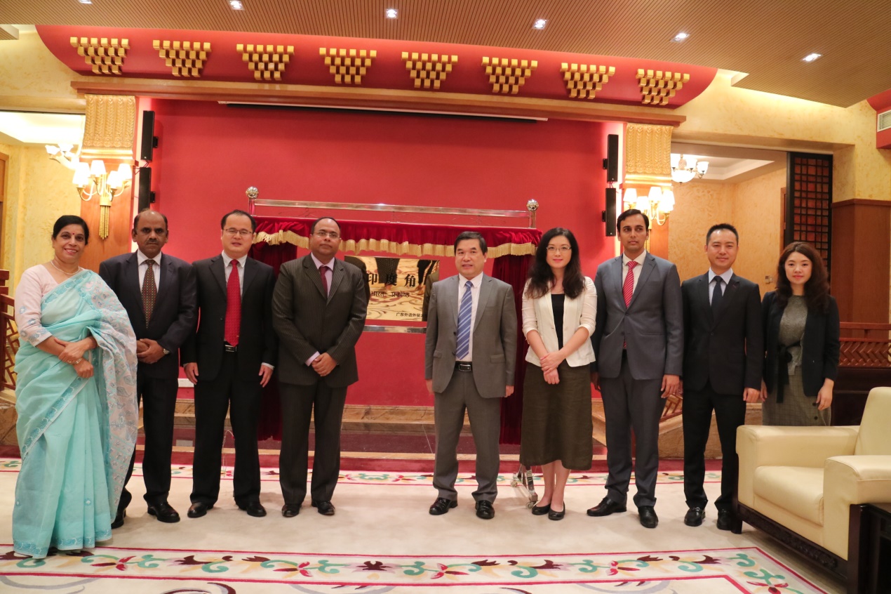 本网讯 10月25日,印度驻广州总领事高士(Sujit Ghosh)一行来访,我校副校长焦方太在北校区行政楼一楼贵宾厅会见来宾。双方就国际合作等问题进行了交流,并共同为印度角揭牌。