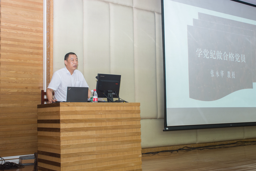 在专题辅导报告中,学校纪委委员、法学院教授张永华围绕《中国共产党纪律处分条例》修订的背景、总体思路、特点和具体修改内容进行讲解,重点通过典型案例剖析《条例》六大纪律修订。他强调,这次《条例》修订把“习近平新时代中国特色社会主义思想”、“两个坚决维护”、“三个重点”、“四种形态”等内容写入《条例》是最大的亮点。新修订的《条例》内容更加科学、更加全面、更具操作性,是党中央站在新的历史起点上,适应新时代党的建设总要求,对全面从严治党、加强纪律建设的再部署、再动员,释放出越往后执纪越严的强烈信号。报告深入浅出、旁征博引,举例丰富,让在座的党员干部对新《条例》有了更加全面、深刻地理解。