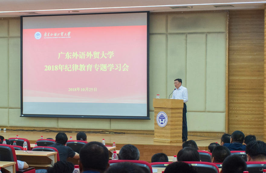 本网讯 10月25日下午,学校党委在北校区图书馆报告厅召开党委中心组(扩大)纪律教育专题学习会,会上播放了党风廉政警示教育片《铸魂——把党的政治建设摆在首位》,开展了《中国共产党纪律处分条例》专题辅导报告和保密纪律教育等活动。校领导,校党委委员,校纪委委员,正、副处职(级)以上干部及附属单位负责人等参加了专题学习会,校党委副书记李云明主持会议。