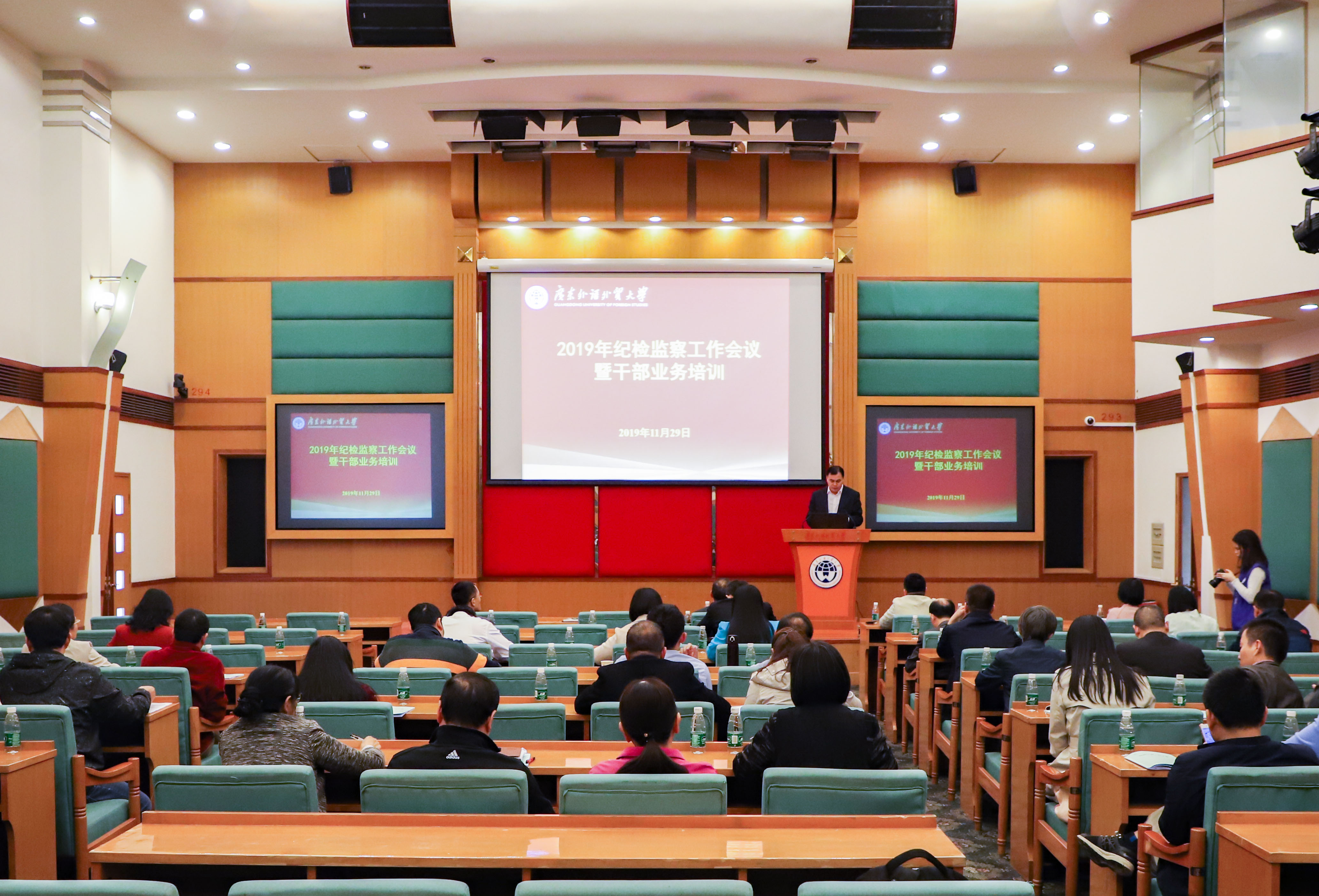本网讯 11月29日,我校在北校区国际会议厅举办纪检监察工作会议暨纪检干部业务培训会,旨在加强我校纪检监察干部队伍建设,提高纪检监察干部综合素质和履职能力,推进纪检监察工作高质量发展。校党委副书记、纪委书记刁振强主持会议并讲话。我校纪委委员、各二级党组织纪检委员、纪委办全体人员参加了会议。