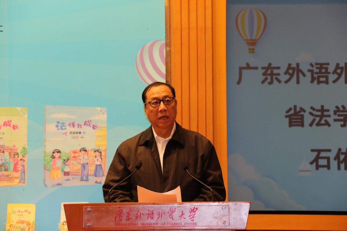 本网讯 12月1日下午,由广东省法学会主办,珠海市法学会、广东外语外贸大学、广东省法学会宪法学研究会和广东教育出版社联合承办的“纪念国家宪法日暨《法伴我成长》丛书首发式”在我校举行。中国法学会副会长张苏军,广东省法学会会长梁伟发,我校石佑启,广东省法学会常务副会长陈文敏,广东省法学会副会长何桂复,广东省委政法委专职委员刘永庆,省委政法委二级巡视员、省法学会副会长兼专职秘书长姜滨,广东教育出版社副总编辑卞晓琰等出席此次活动。来自民主与法制社、人民法治报、中国经济导报、广东广播电视台、南方法治智库、南方日报、南方网、广州日报等多家媒体参加本次活动,并进行宣传报道。