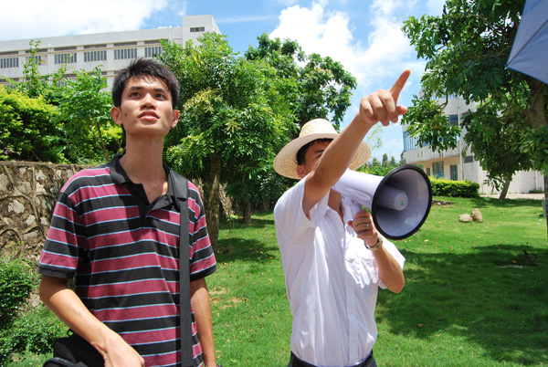 海陵中学梁书记热情地招待了队员们。队员们安顿下来后,便跟随梁书记参观了海陵中学。五个男队员之一的蔡同学说:“虽然这里的食宿环境不够好,但我们是来‘三下乡’而不是来渡假的,习惯了就好。”看到阳江海陵岛如玻璃般蓝得透明的天空,女队员李同学表示,来到后就马上喜欢上这里,期待明天与可爱的同学们见面。