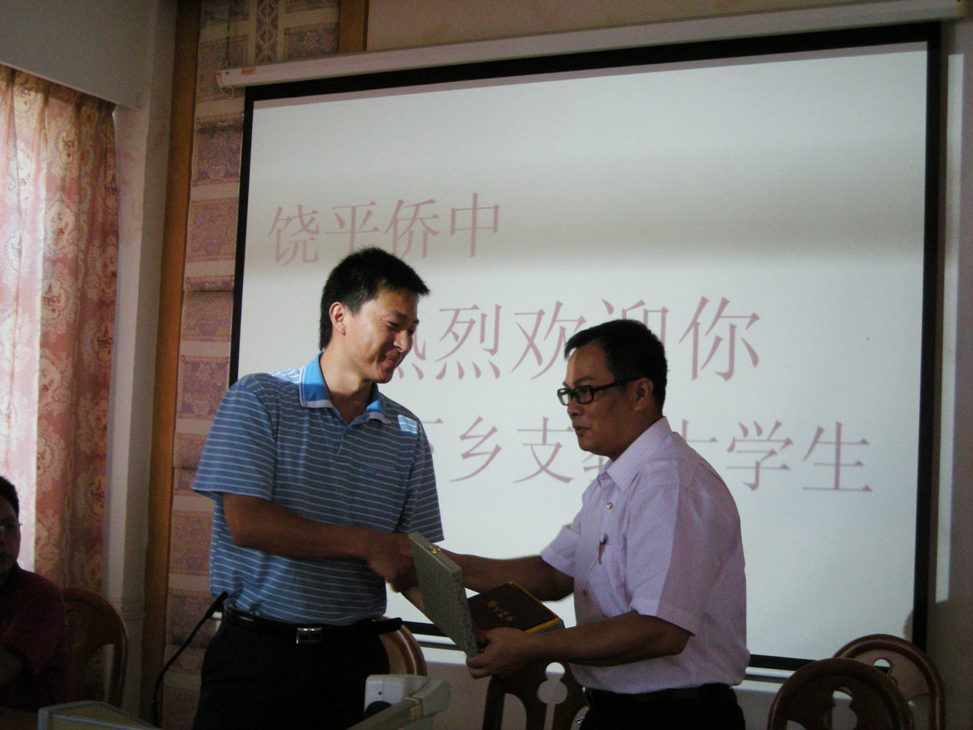 袁金轩老师代表经贸学院向饶平侨中赠送纪念品