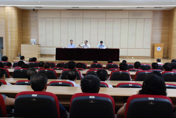 本网讯 7月10日下午,金耀观、陈德萍同志任职宣布大会在北校区图书馆负一层多功能报告厅举行。省委教育工委党组副书记谭泽中、干部处处长朱伟新等领导出席了宣布大会。校党委书记徐真华主持会议。