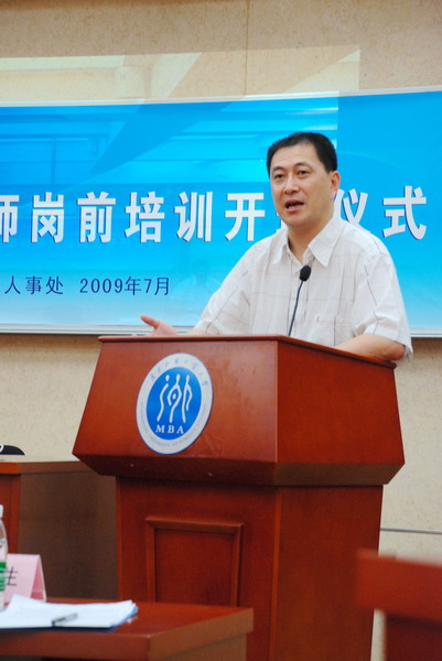 本网讯 7月9日上午9点,我校2009年教师岗前培训开班仪式在北校区六教MBA103室举行。校长隋广军,人事处处长方迎生、副处长谢文新,教务处副处长范正华,人事处师资科相关同志以及学校2009年新录用的30多位教职工出席开班仪式。开班仪式由方迎生主持。