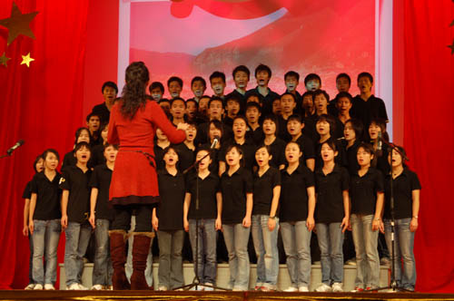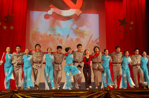 整场晚会中歌曲和舞蹈仍是主流:歌曲串烧《岁月流声》,美声独唱《我和我的祖国》,舞蹈表演《山丹丹花开》、《呼唤腾飞》、《把一切献给党》精彩不断。高亢激昂,婉转动人的歌声在报告厅内萦绕,舞者身着色彩艳丽的服饰,用其热情洋溢的舞姿十足打造出一道道靓丽风景。