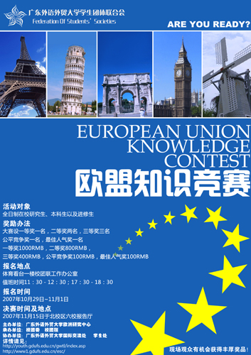 前段时间,由我校欧洲研究中心主办,校团委、校团联协办的“欧盟知识竞赛”落下帷幕,报名参加者十分踊跃。初赛仅北校就有六十多支队伍报名,南校报名情况更为“壮观”。据了解,此次竞赛火爆的原因之一是优胜者可以获取一定奖金。而此前,同样以奖金作为优胜者奖励的“加拿大知识竞赛”,一样获得了许多学生的青睐。