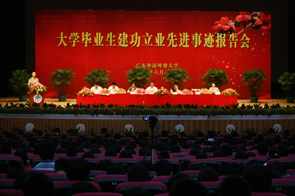 教育部思想政治工作司副司长迟刚毅、中宣部宣教局农村处处长孙德立、教育部思政司副处长于天琪和广东省委宣传部副部长阎静萍、省教育厅副厅长李小鲁出席了此次报告会。此外,来自中山大学、华南理工大学等14所高校的师生代表共1300人也参加了报告会。我校副校长方凡泉,学生处、团委、就业指导中心的老师,各学院党委副书记及相关辅导员,150多名学生等作为我校代表出席。报告会由阎静萍主持。