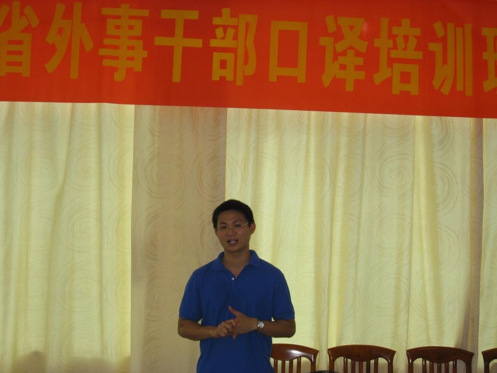 学员代表韶关学院国际交流处苏伟然发言。他首先感谢省教育厅和我校领导对此次培训班的关心,并对广外各位任课老师表示衷心的谢意。他认为,此次培训不仅提升了学员的业务能力,还促进了各高校外事干部之间的交流,为各高校今后的合作与交流提供了一个很好的平台。