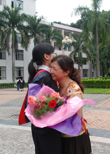 “四年里,我逐渐抛弃了以前那幼稚的想法——总以为依靠父母是理所应当。我感觉到自己在独立、成熟。身为男子汉,我知道我应该有所改变,因为我意识到,照顾父母已成为我的责任。不能常常回家,我总会在电话里叮嘱父母照顾好自己的身体,把一切值得高兴的事情与他们分享。我还记得有一次与父亲准备结束通话时,我第一次抢在他前头,说出了‘要注意身体’这句话。电话那头停顿了片刻,然后父亲才回答到‘你也是’。我想,父亲当时应该会感到突然,这也许是一个小小的惊喜,我想告诉父母我要开始学会照顾他们。”东语学院的傅同学动情地述说着这些琐碎而珍贵的回忆。虽然父母没能参加自己的毕业典礼,但他知道,自己能在社会上有所作为,就是对他们最好的报答。