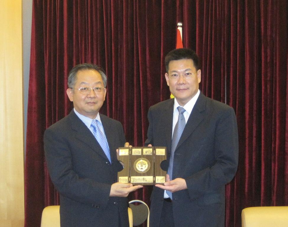 仲伟合向金长焕赠送纪念品