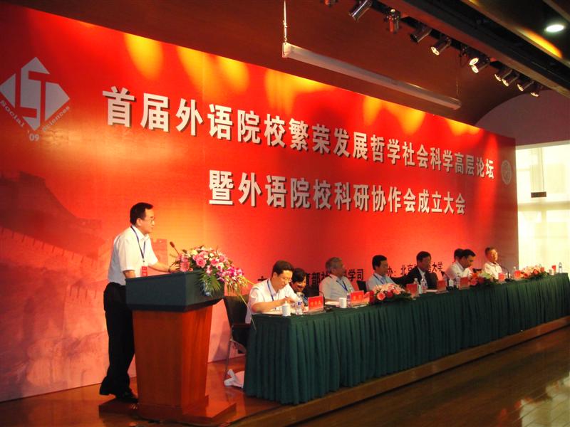 本次会议由教育部社科司主办,北京外国语大学承办。教育部社科司副司长张东刚、规划处处长徐青森、成果处处长魏贻恒及来自全国14所外语类院校的校领导、科研管理部门领导、相关“985”、“211”高校外语学院领导出席了会议。
