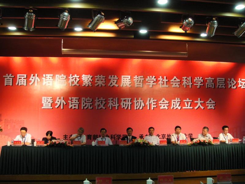 本网讯 6月19日-20日,首届外语院校繁荣发展哲学社会科学高层论坛暨外语院校科研协作会成立大会在京举行。我校副校长顾也力、科研处副处长李青、科研处陈平代表我校出席会议。