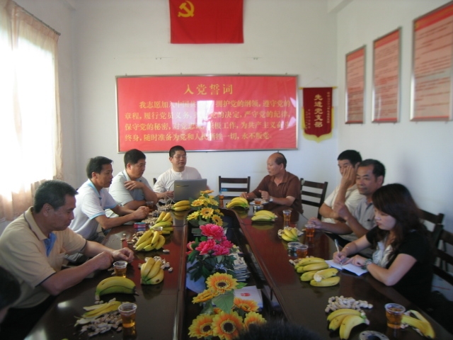 在清平村委会议室的座谈会上,驻村工作组干部钟雄波向保卫处党支部和工会一行详细汇报了驻村工作情况。清平村党支部书记兼村委会主任顾钊介绍了该村的总体情况。顾钊特别提到钟雄波作为一名驻村干部,能密切联系群众,为当地村民解决实际困难。在今年的春耕季节,钟雄波主动下田帮助困难群众插秧,先后为四名当地青年解决了就业问题,并根据村干部的提议和村民的诉求,经过学校领导同意后,出资2300多元在五个进村路口建立了进村标示牌,受到当地村民的高度评价。