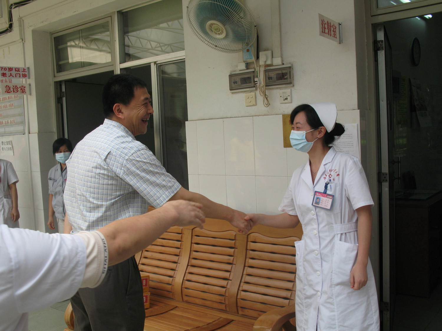 护士小李曾接诊患病的吴同学,之后因出现发热症状而被隔离。18日凌晨刚刚出院,下午即回校上班。隋广军获知情况后,马上上前关切地询问她的身体情况,微笑地叮嘱她注意身体。