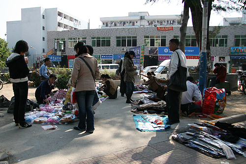 编者按 近来,我校北校区北门外,在“创卫”大旗整治下曾一度消失的小摊再度卷土重来,并且大有增长势头。卖衣服、卖电话卡、卖水果……无论是白天还是晚上,北门外面热闹非凡。许多学生、路人挤在一旁选购,部分路过的学生则抱怨小摊小贩占道经营,不方便行人和车辆行走。对于校外越来越多的小摊,广外学生有何看法,它们又是怎么影响着广外学生的生活?带着这些问题,本网记者走近北门小摊,揭开它的面纱。