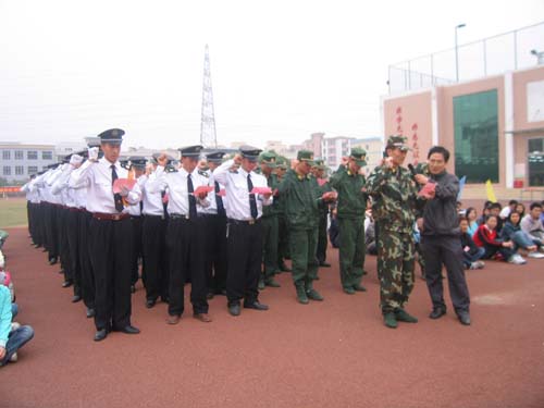 随后,在队员张卫的带领下,与会的所有校卫队员庄严宣誓,保证做好校园安全保卫工作,为实现文明、和谐、安全的校园环境而努力工作。学生代表、公开学院国际商务系07级赵东旭同学也上台发言,从学生的角度阐述了校园安全的重要性,表示会从自我防范做起,积极参与到创建平安校园的活动中。