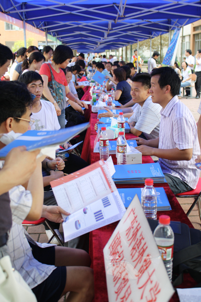 经贸学院咨询点前人头攒动(图/李文舜)