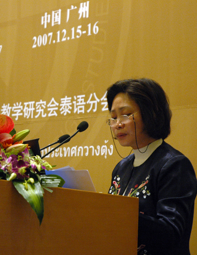 顾也力致开幕辞。他首先对此次大会的召开表示热烈祝贺,对远道而来的专家学者表示欢迎,感谢教育部及各高校领导对我国泰语本科人才培养事业的高度重视和大力扶持,感谢泰国政府对中泰两国的教育合作与交流的支持与促进,以及泰国驻广州总领事馆对广外泰语事业的帮助。最后,他描述了中泰两国关系的美好前景,并预祝此次大会取得圆满成功。