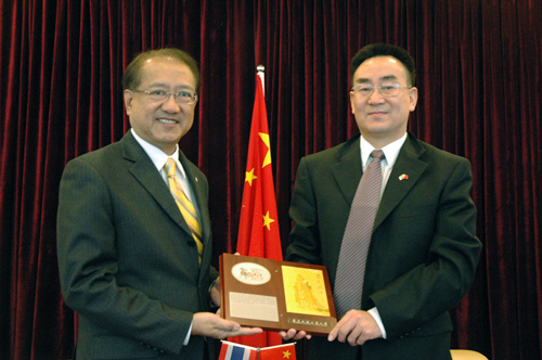 顾也力代表我校与那他沃·普提沙洛交换礼物