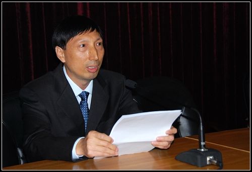 受广外大党委常委、组织部部长卢景辉的委托,组织部组织科科长胡文华宣读了李建民同志职务聘任的通知——广州市广外附设外语学校董事会:经12月11日校党委全委会研究同意,李建民同志任广州市广外附设外语学校校长,聘期至2008年12月31日。免去刘世平同志的附设外语学校校长职务。