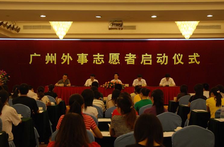 本网讯 6月13日下午,广州外事志愿者启动仪式在广州大厦隆重举行。本次大会的出席嘉宾有广州市外事办主任李明、广州市外事办礼宾处处长朱小燚,以及我校党委副书记许国彬、校团委书记刘志军。朱小燚主持了本次大会。来自广东外语外贸大学、广州大学和广东外语艺术职业学院等高校的近百名外事办核心志愿者也参加了此次启动仪式。据悉,为广州“2009UCLG世界理事会会议暨广州国际友城大会”招募志愿者,是本次启动仪式的主要目的之一。