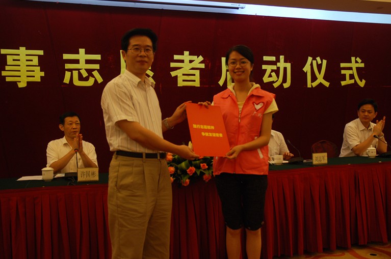 接着,李明向我校志愿者代表李丹授予证书。李丹表全体志愿者发言,承诺以饱满的工作热情、优秀的专业水平、周到的服务态度,圆满完成广州国际友城大会的服务工作,让来访的国际友人全面感受广州的魅力和广州志愿者的风采。